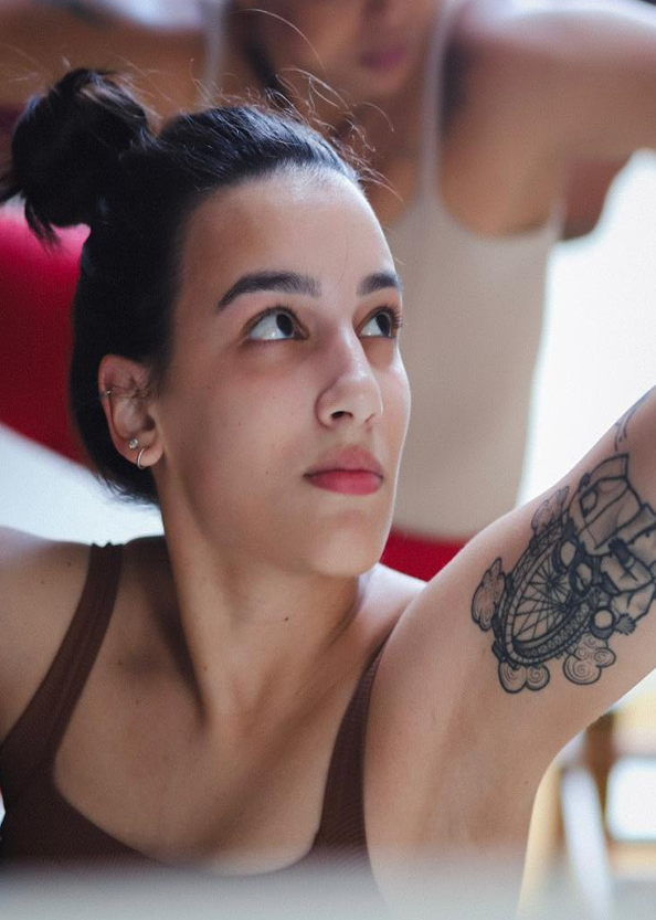 Praticante de yoga desde 2006, bióloga marinha, e professora de yoga desde 2017 com diversas formações. Incansável no acolhimento, evoca os elementos naturais nos asanas e pranayamas para desenvolver uma consciência presente e simbólica, gerando encontros com a saúde natural autêntica.